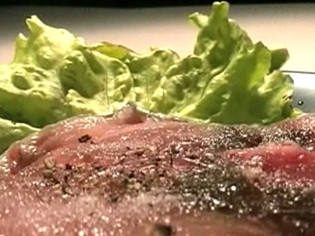 Приготовьте вкусный тунец с помидорами.Состав:тунец — 1 кусок;томатный соус, масло, соль, петрушка.